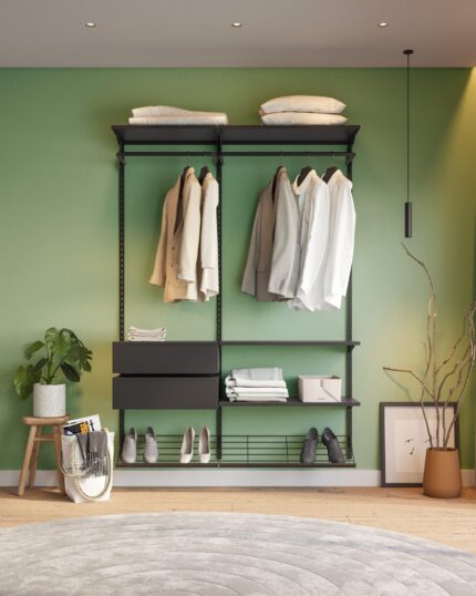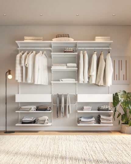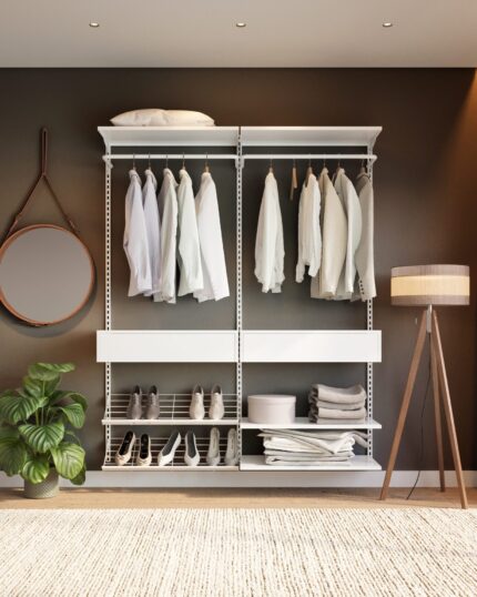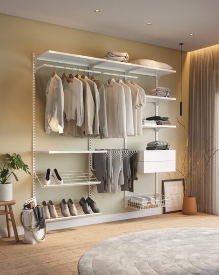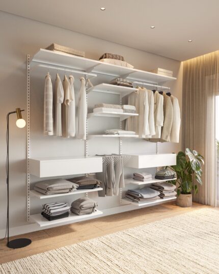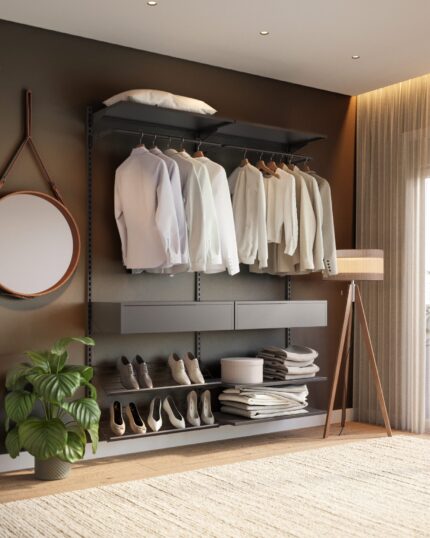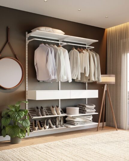 Este closet modular protege suas roupas e valoriza o seu espaço.