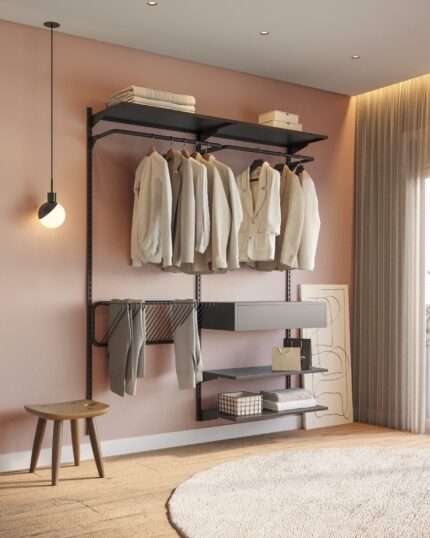 Escolha acessórios que otimizam cada centímetro do seu closet. Crie um espaço único, organizado e cheio de personalidade.