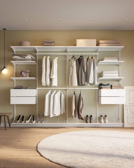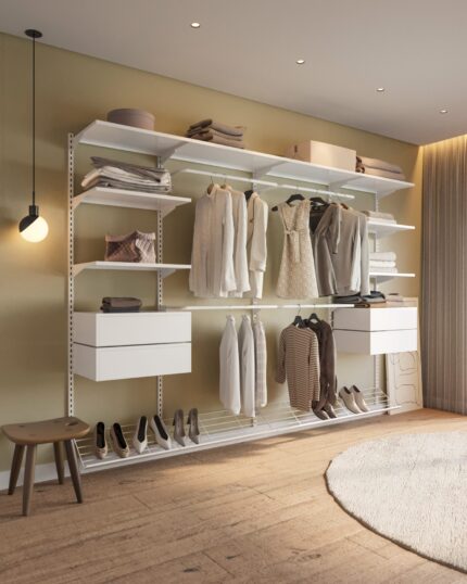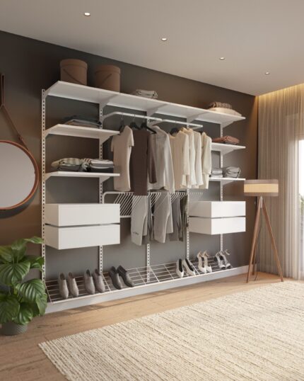 Este closet modular protege suas roupas e valoriza o seu espaço.