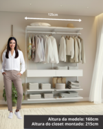 O grande diferencial deste closet modular está na sua estrutura aberta, que favorece a ventilação natural e evita o acúmulo de mofo e odores. Ideal para ambientes úmidos ou com pouca circulação de ar, ele garante que suas peças permaneçam sempre frescas, bem cuidadas e prontas para o uso — sem surpresas desagradáveis.
