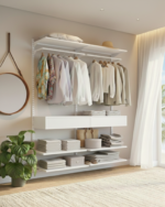 Escolha acessórios que otimizam cada centímetro do seu closet. Crie um espaço único, organizado e cheio de personalidade.