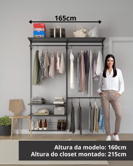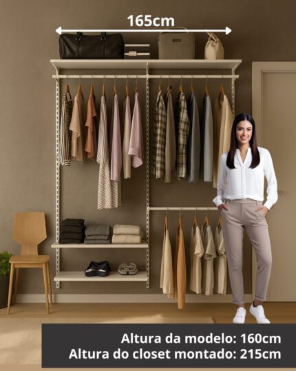 Escolha o closet dos seus sonhos com sistemas modulares versáteis e elegantes. Personalidade em cada detalhe e compartimentos conforme suas necessidades, garantindo organização e estilo em qualquer espaço.